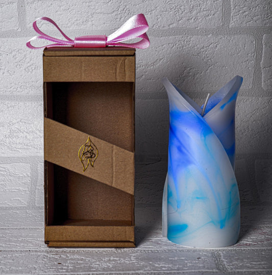 Zapachowa świeca stożkowa „Kwitnący Kielich” - Rękodzieło, 20 cm - Niebiesko-Biała - Hand-made
