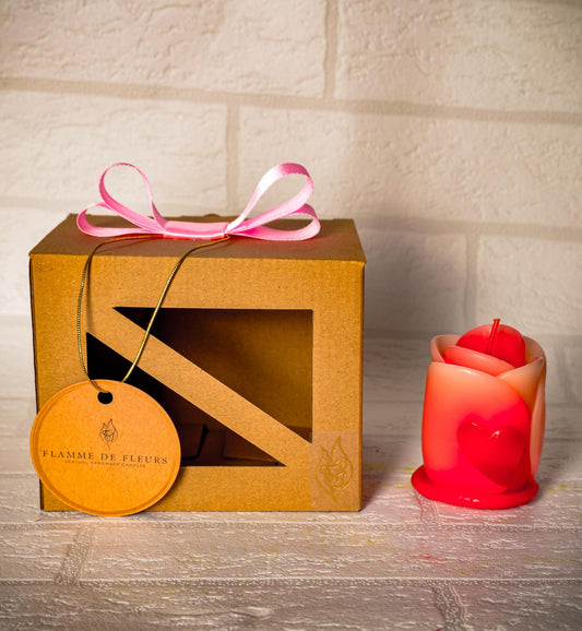 Romantyczna ręcznie robiona świeca 20cm kielich kwiatu z sercem, zapachowa