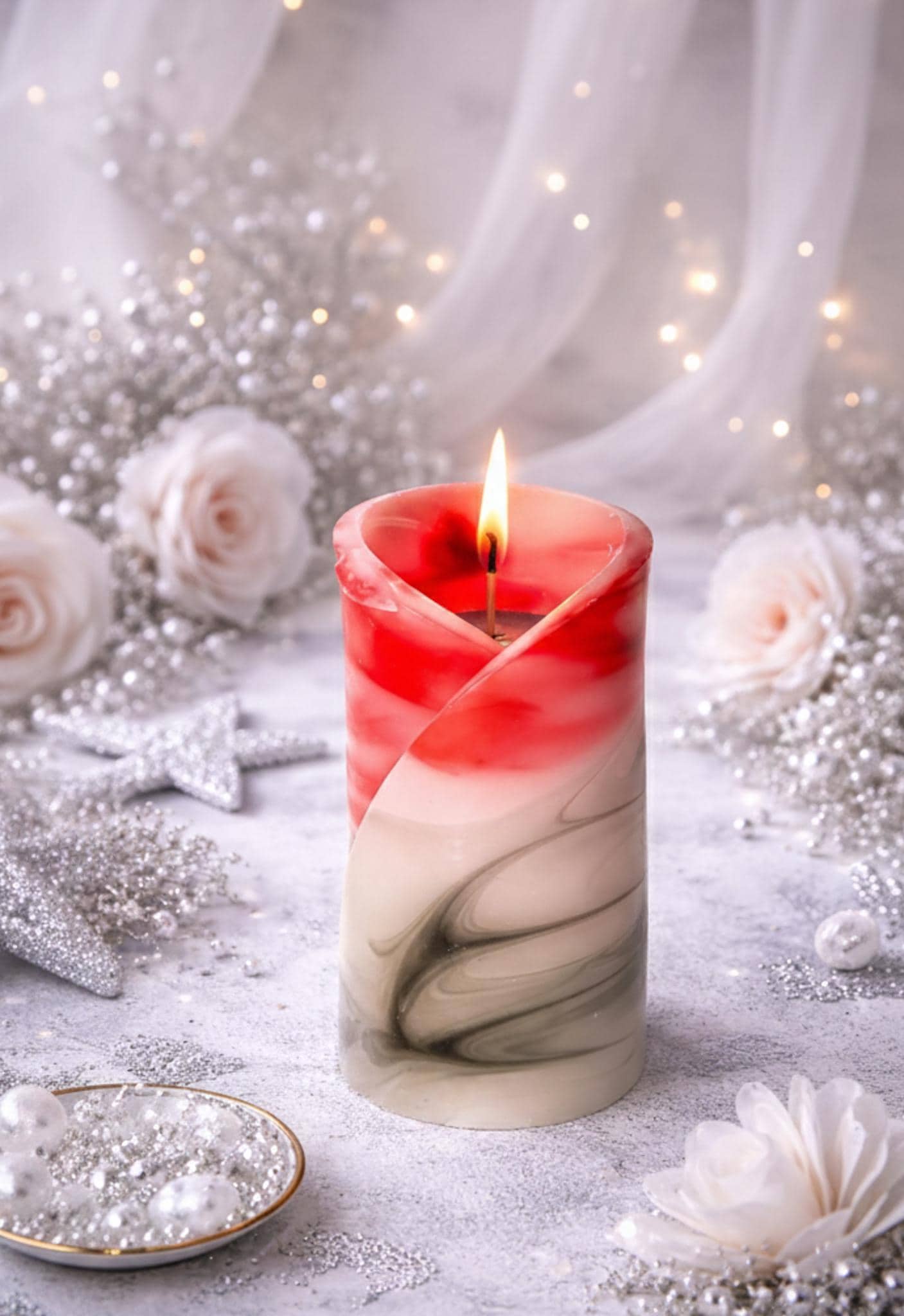 Artystyczna Świeca Zapachowa „Geometria Kwiatu” - Biało-Czerwone Rękodzieło