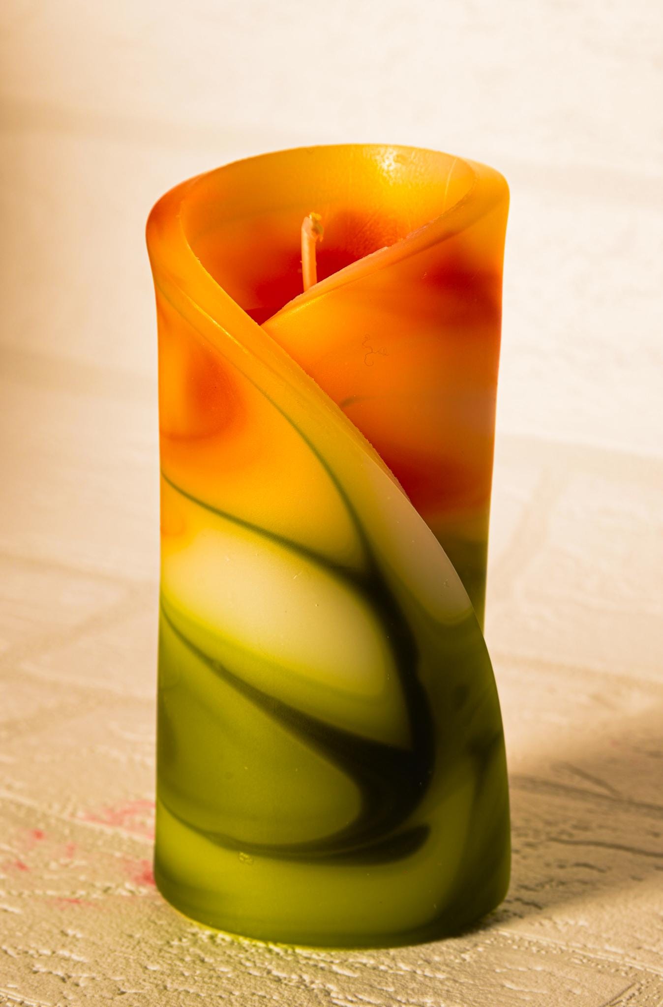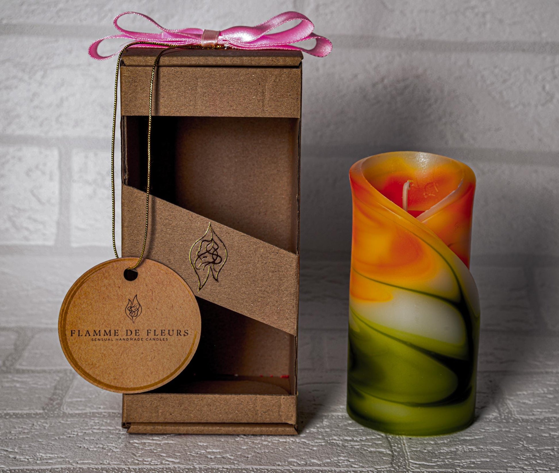 Kwiatowa, geometryczna, kolorowa, ręcznie robiona świeca zapachowa - ozdoba tarasu, Dzień Matki, dla niej - 40h, pudełko prezentowe