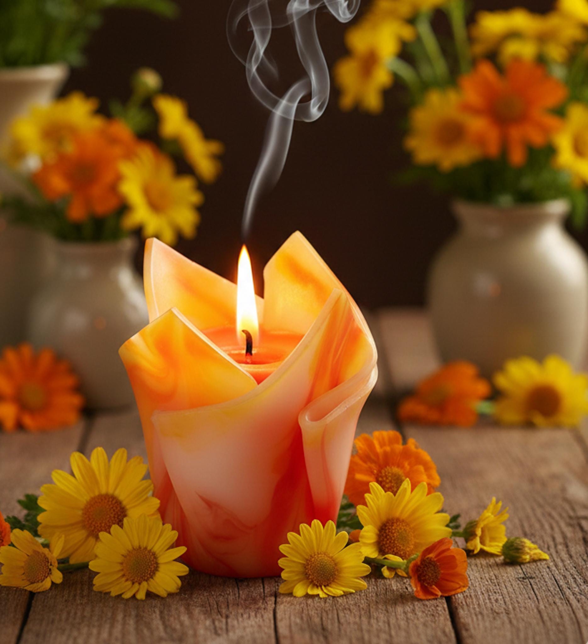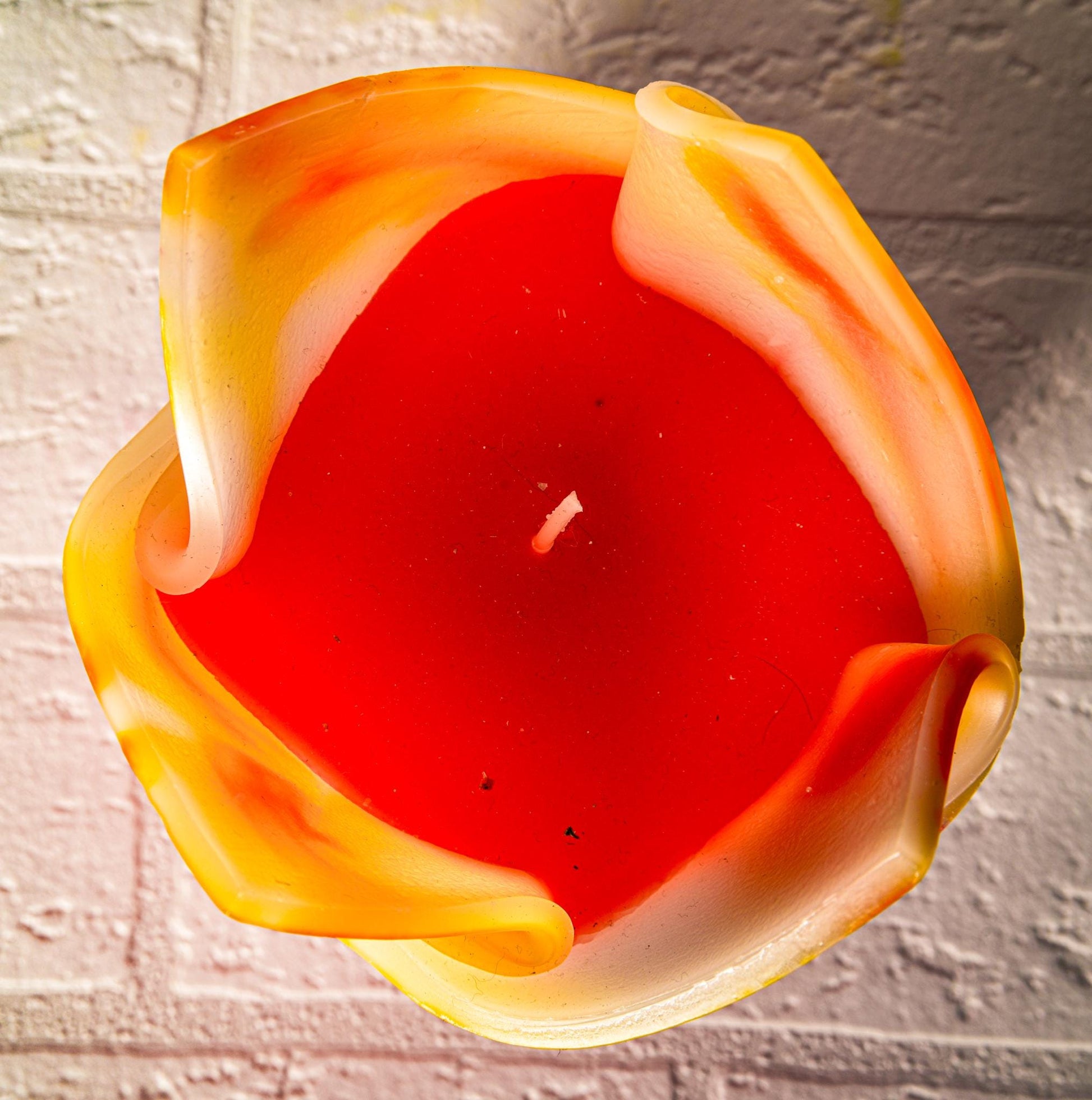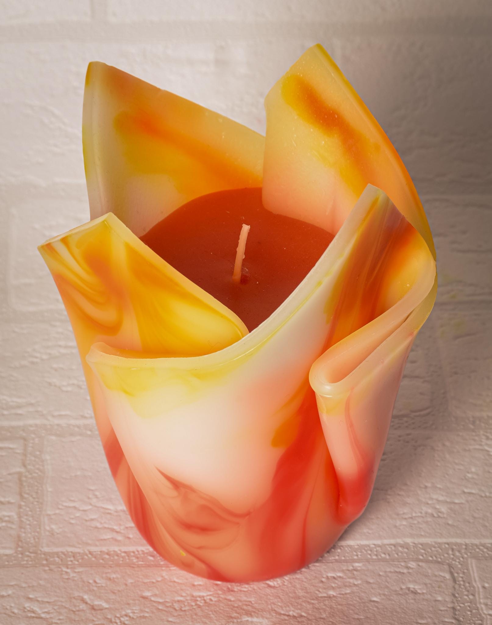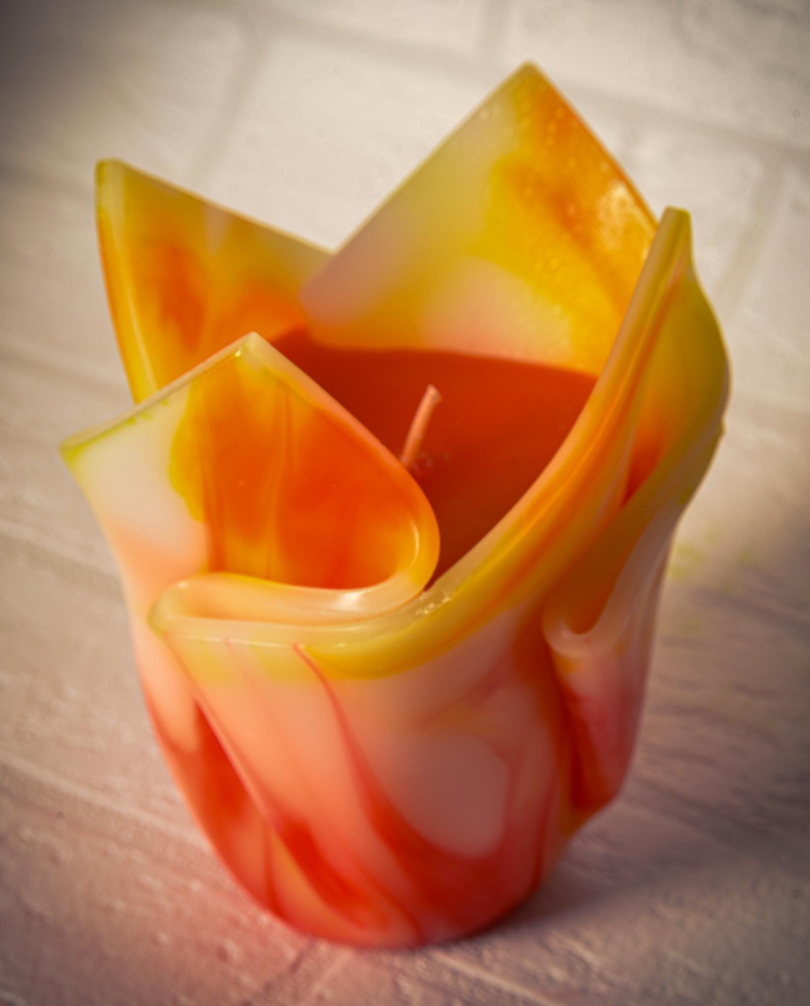 Kwiatowa, geometryczna, minimalistyczna, kolorowa, ręcznie robiona świeca zapachowa - żółto-pomarańczowa, prezent Święta, ozdoba domu
