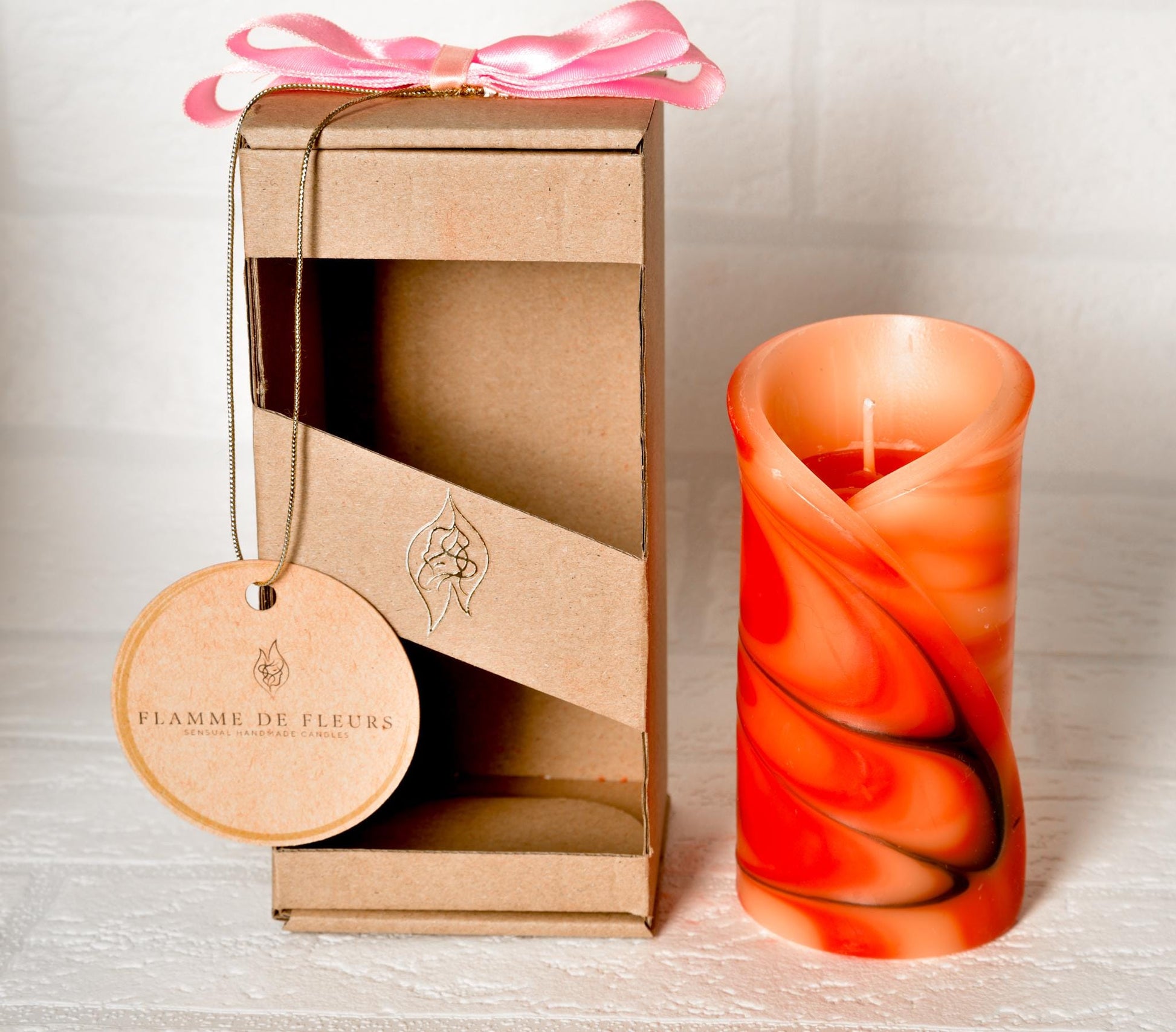 Ognista, kwiatowa, geometryczna, ręcznie robiona świeca zapachowa - prezent: dla niej i dla niego, Walentynki, Dzień Matki - 40h, pudełko