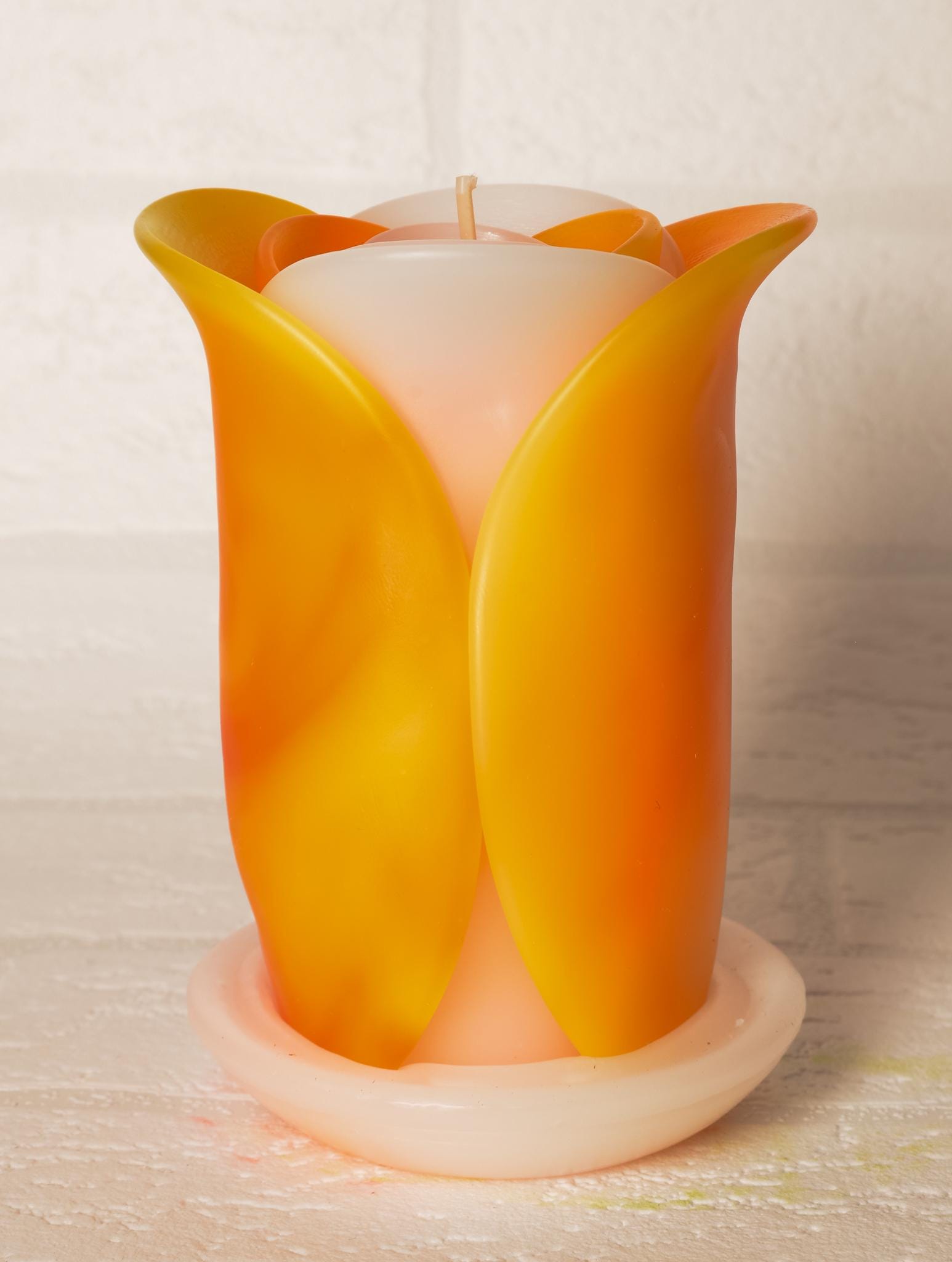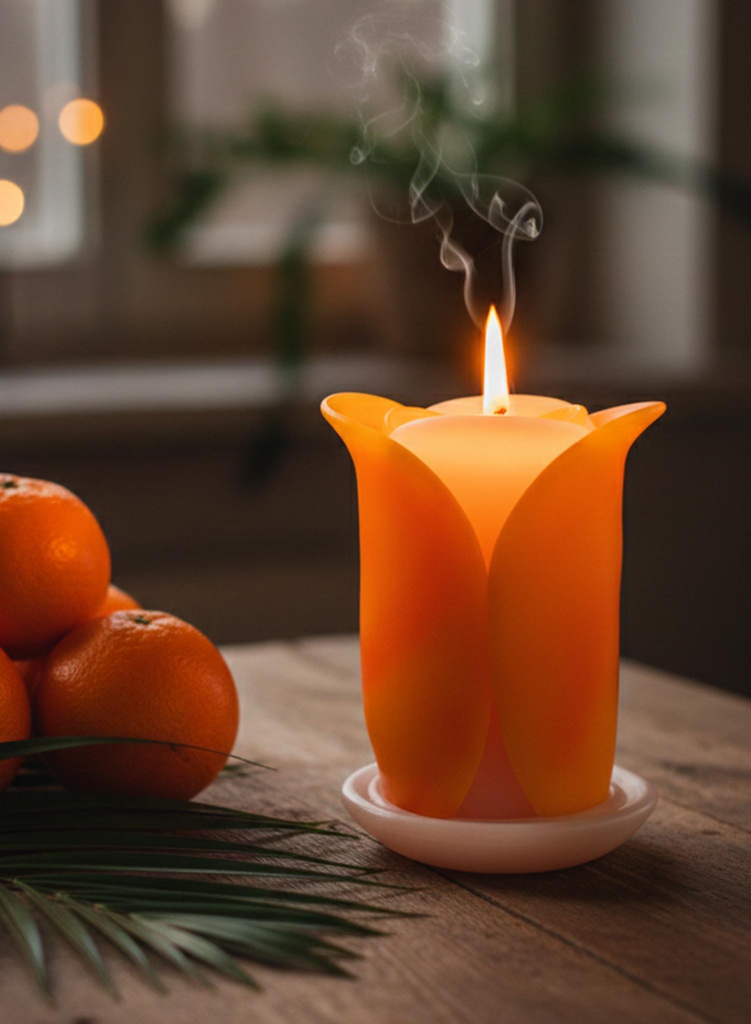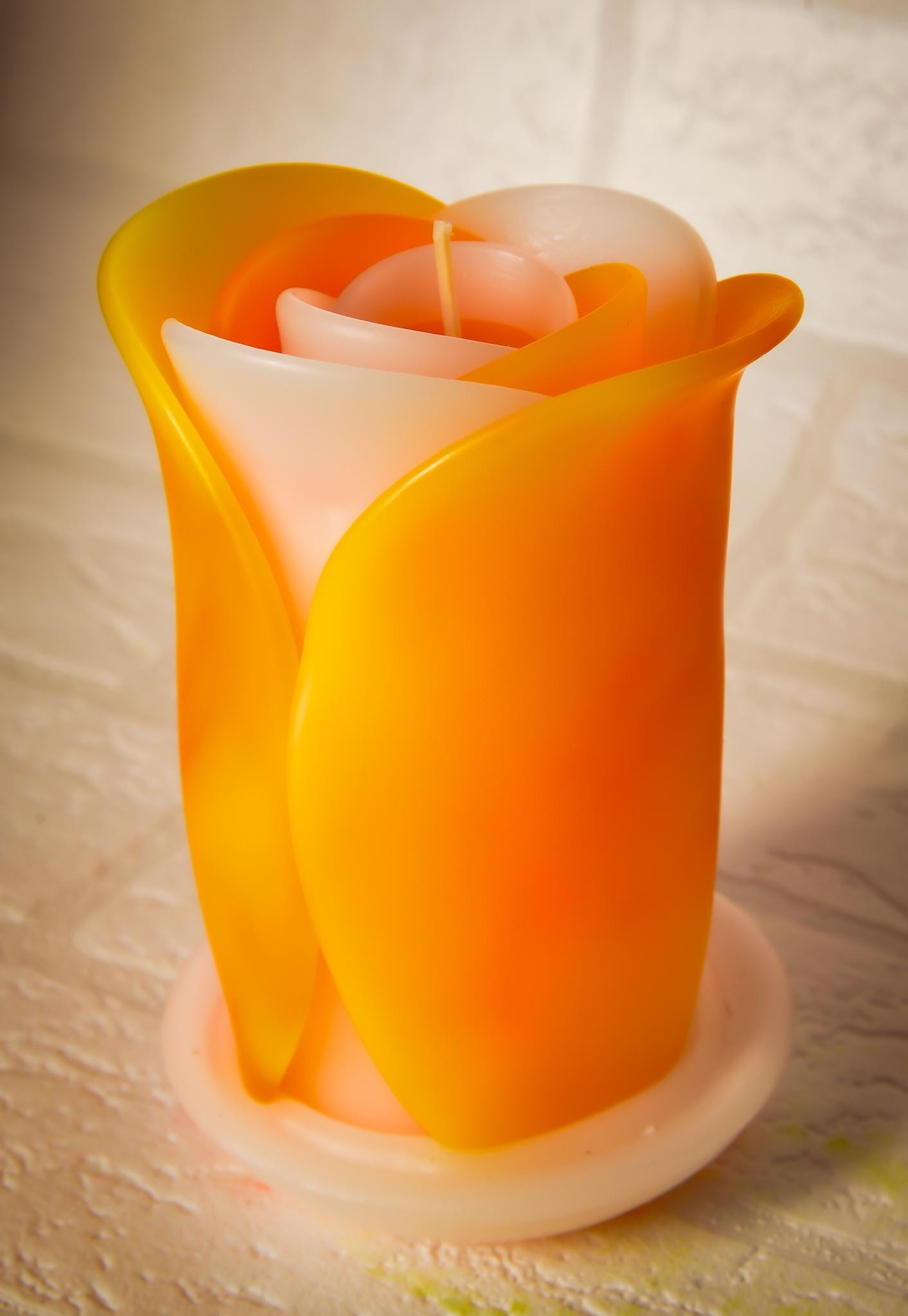 Róża - ręcznie robiona świeca zapachowa, geometryczna, minimalistyczna - pomysł na prezent: wnętrze domu, ozdoba, pomarańczowy - 60h