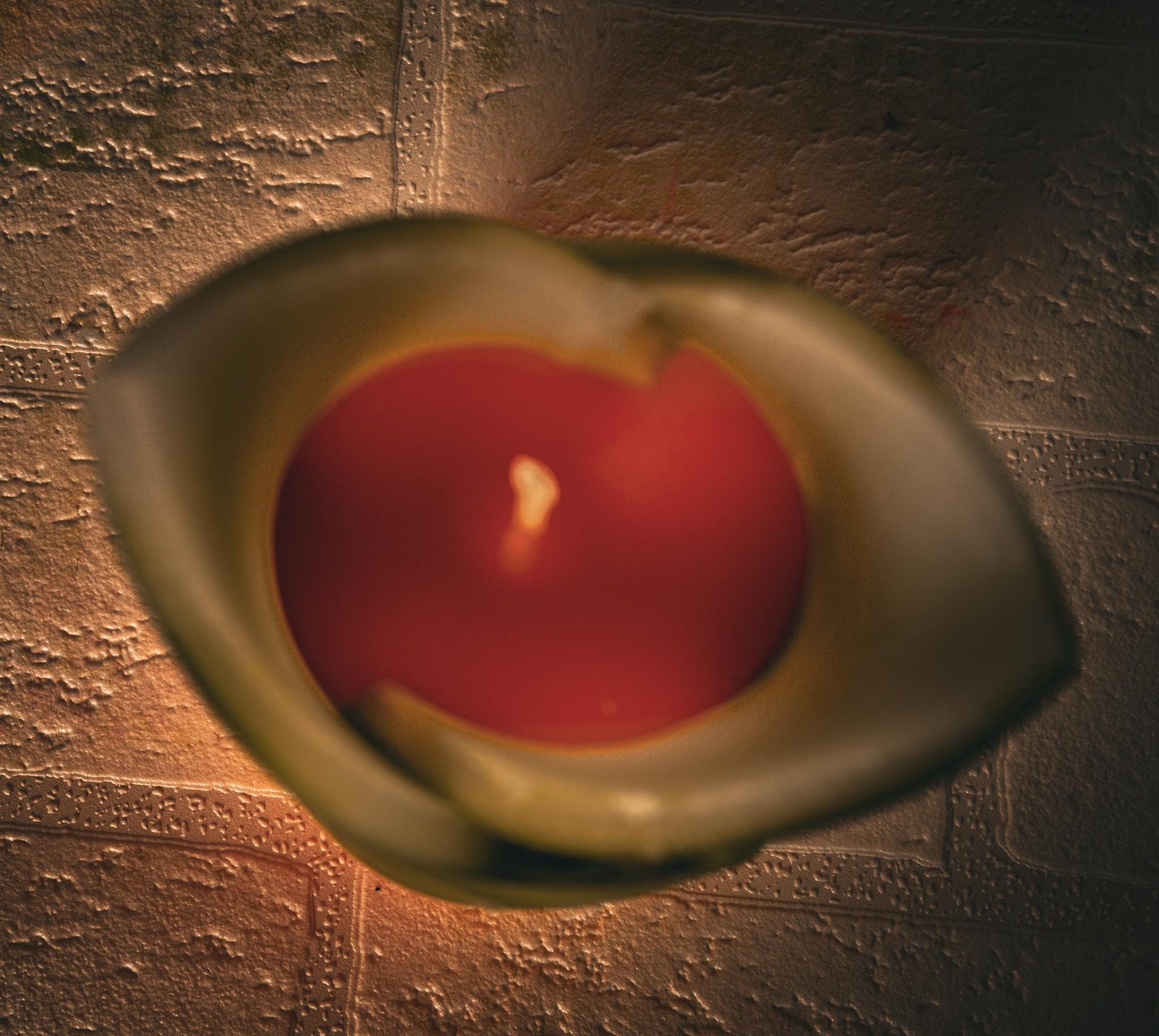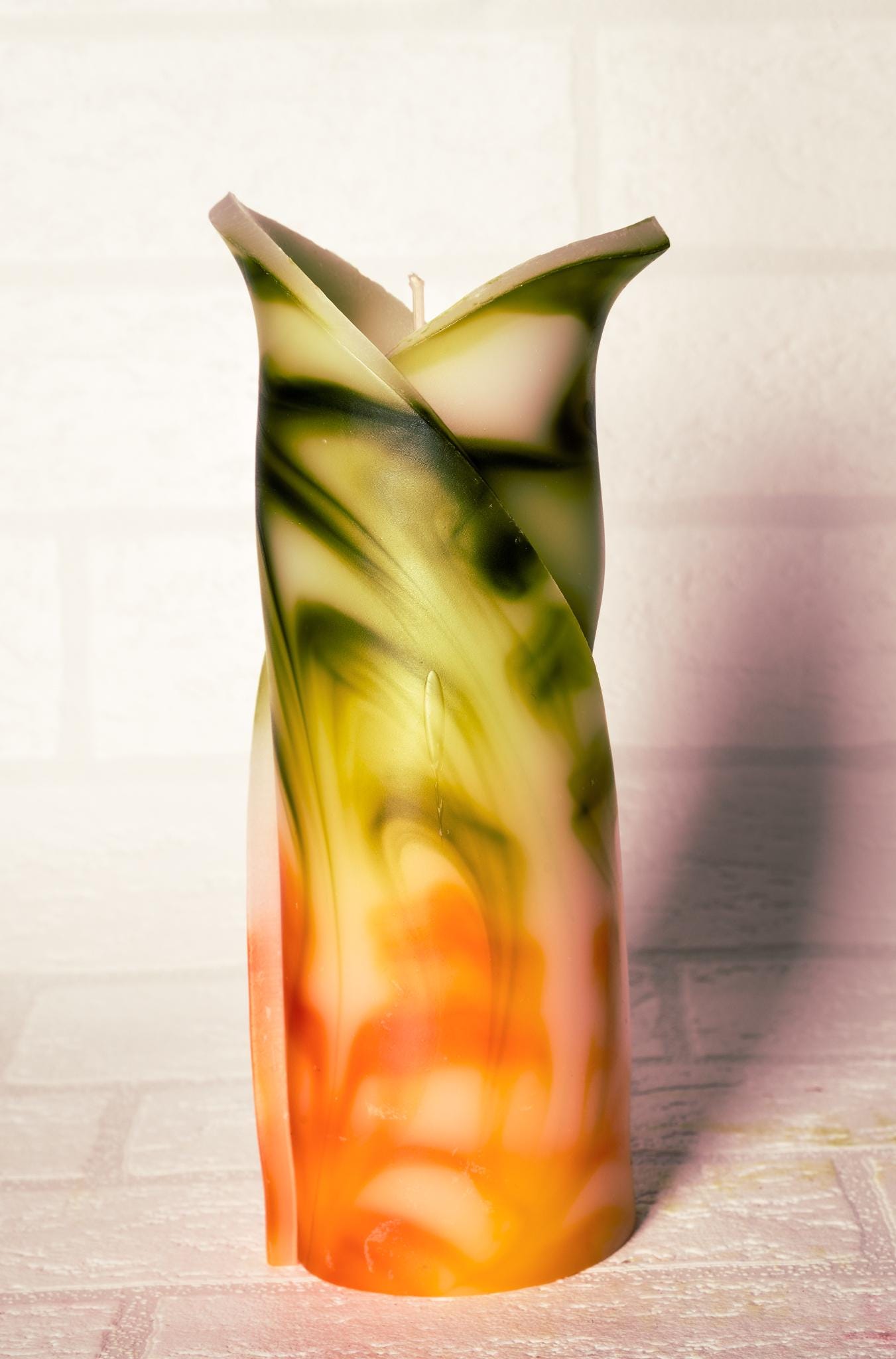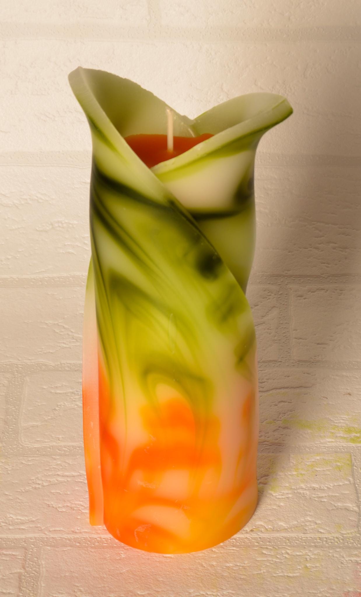 Świeca kielich kwiatu, geometryczna, zapachowa - zielono-pomarańczowa - 70h, pudełko prezentowe - ozdoba na stół do domu, pomysł na prezent