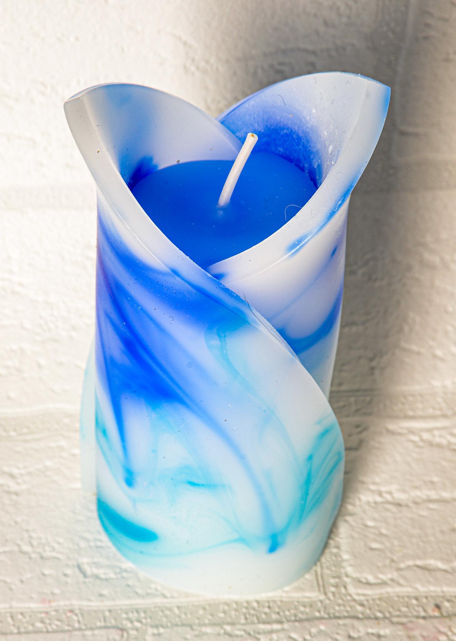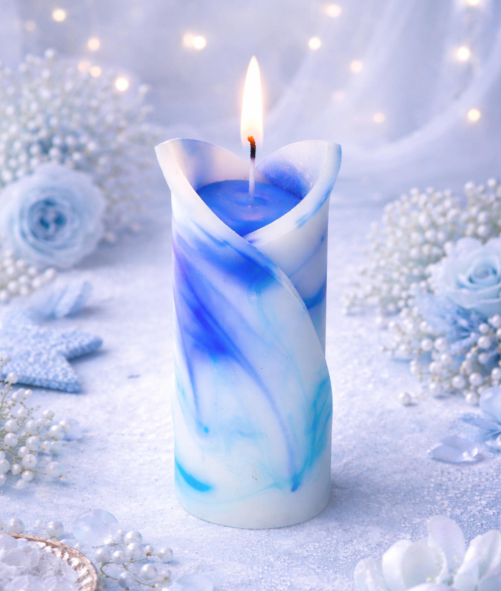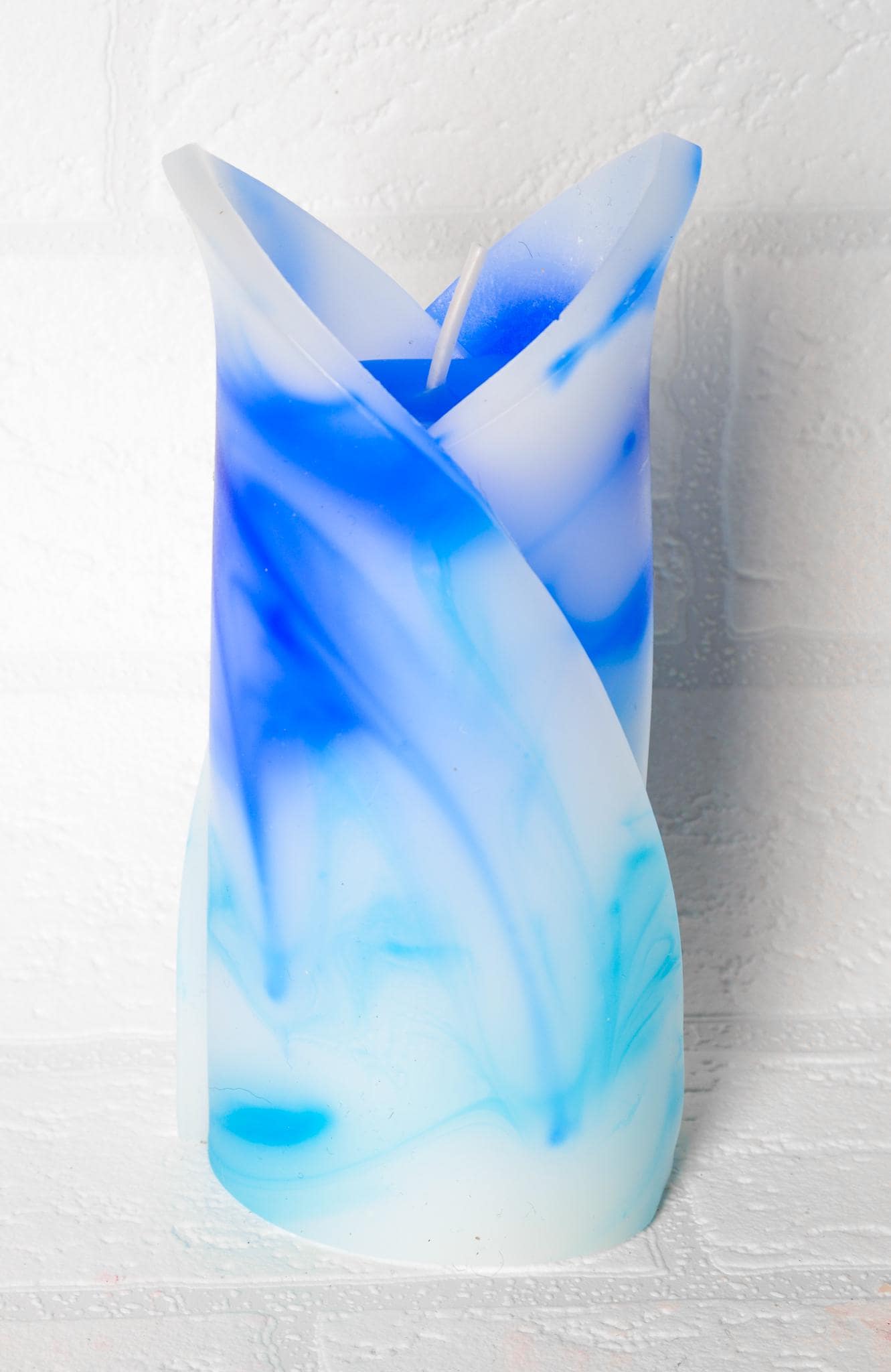Zapachowa świeca stożkowa „Kwitnący Kielich” - Rękodzieło, 20 cm - Niebiesko-Biała - Hand-made
